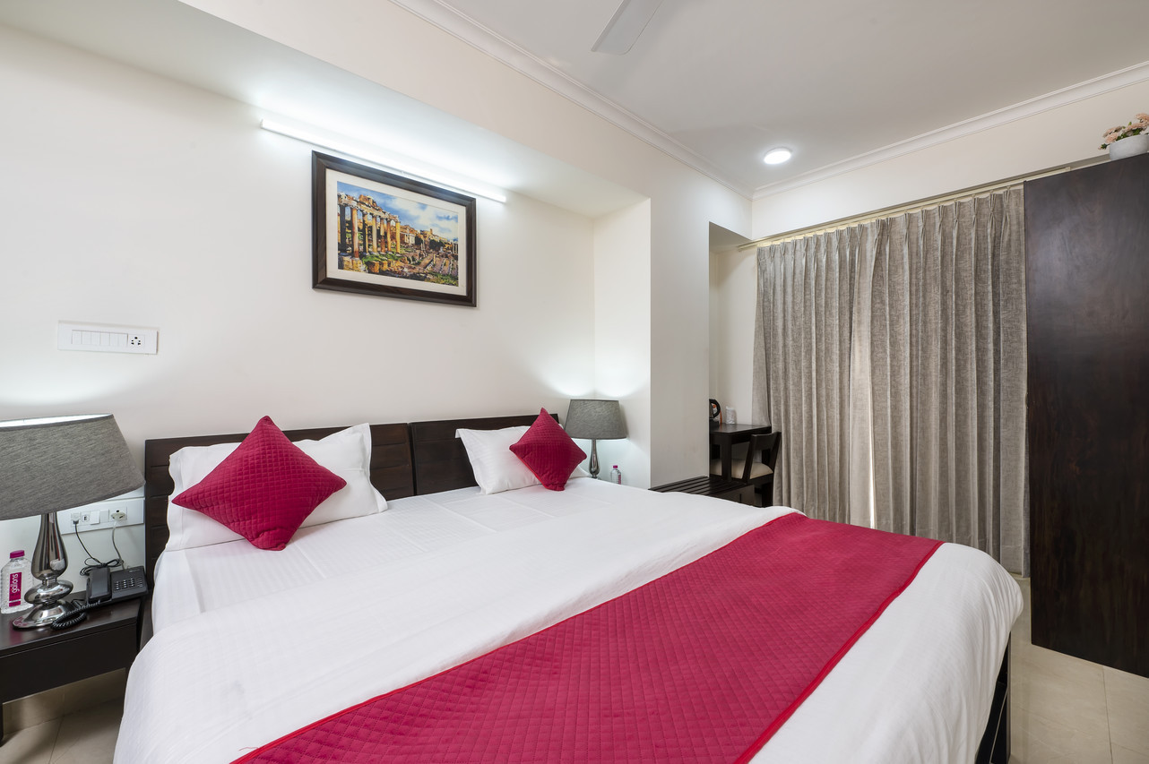 A room that offers superior living with loads of amenities and an attached private balcony for that extra freshness. The deluxe room is equipped with flat screen, Tea coffee maker and complemintery toiletries. Enjoy the perfect air-conditioned environment with large windows and comfortable double beds.