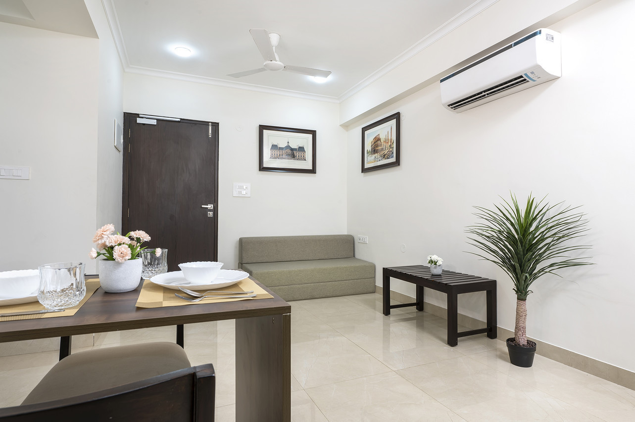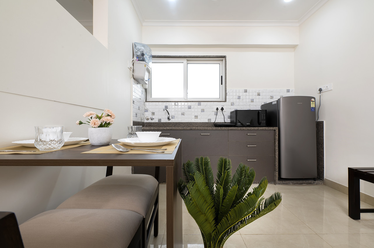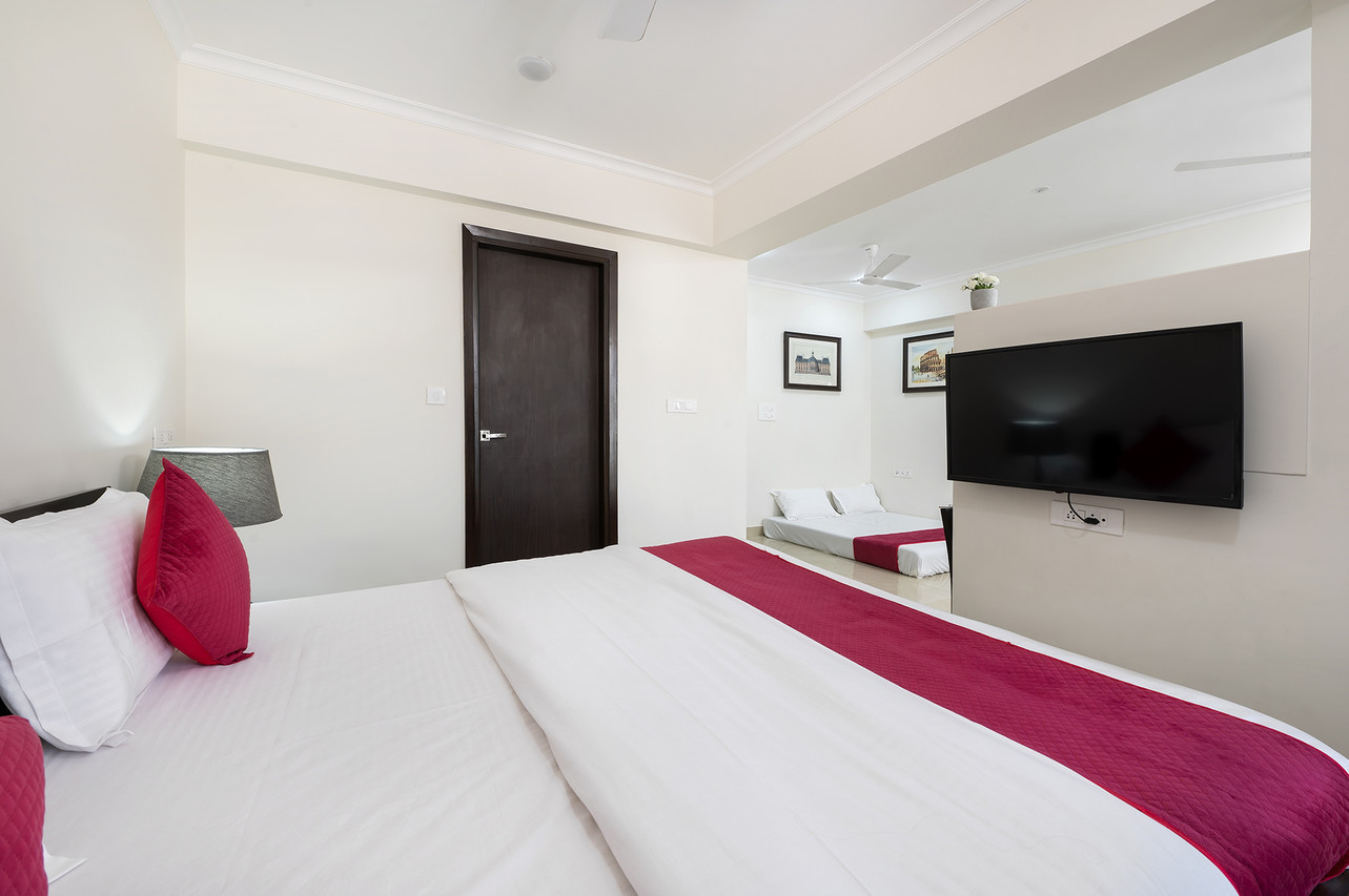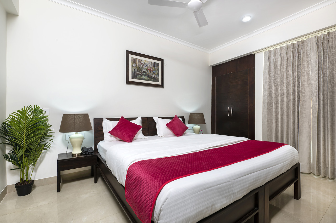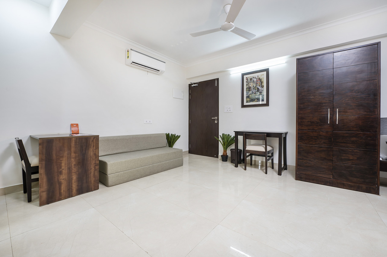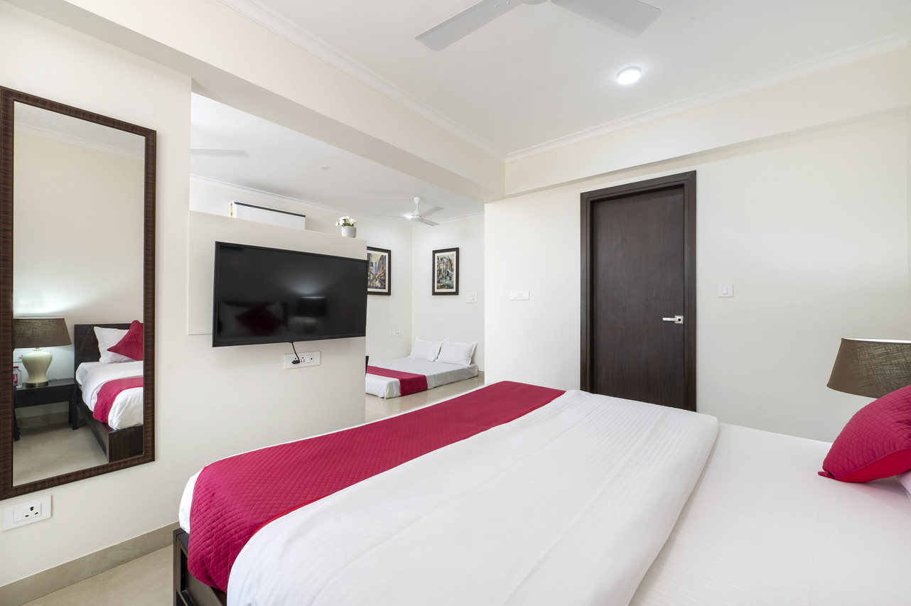 The Studio suite has all the comforts, amenities and appliances for a plush experience. An attached kitchen with refrigerator, microwave oven, induction cooktop and RO filter makes you completely self sufficient during your stay. Beside the spacious air-conditioned area you can breath fresh air and sun from your private balcony.